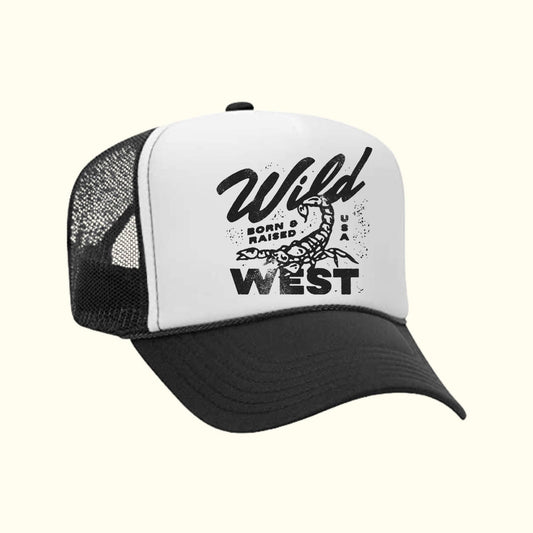 Wild West Western Cowboy Grunge Trucker Hat - Blk/Wht