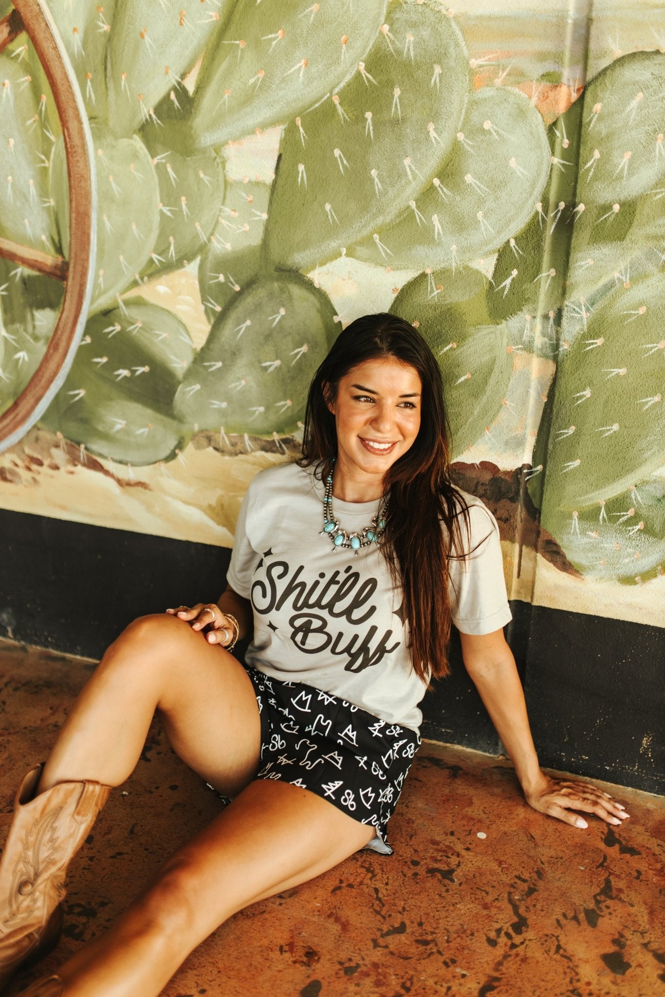 Keep it real with the Shit'll Buff Graphic Tee. This laid-back tee features a humorous "Shit'll Buff" graphic, perfect for those who take life's challenges in stride. Embrace your easygoing attitude and add a touch of humor to your wardrobe with the Shit'll Buff Graphic Tee.